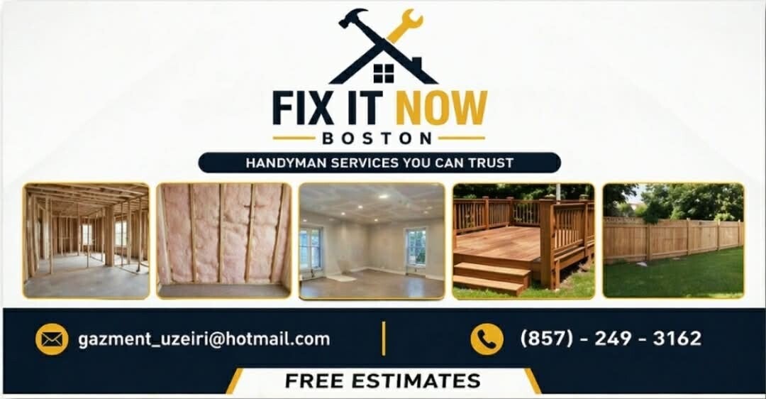 Our customers consistently say that Fix It Now Boston is reliable, fast, and professional. They appreciate our quick response times, honest communication, and high-quality workmanship on every job. Many customers highlight that we arrive on time, explain the work clearly, and complete repairs efficiently without hidden costs. Others mention that they feel confident and stress-free knowing their home is in safe hands. Overall, our reviews show that we are trusted for being dependable, affordable, and focused on delivering great results every time.